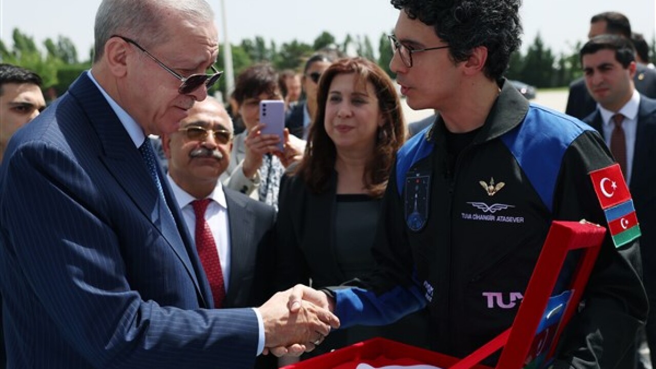 Cumhurbaşkanı Recep Tayyip Erdoğan, Türkiye'nin ikinci astronotu Tuva Cihangir Atasever ve ailesini Esenboğa Havalimanı'nda kabul etti.