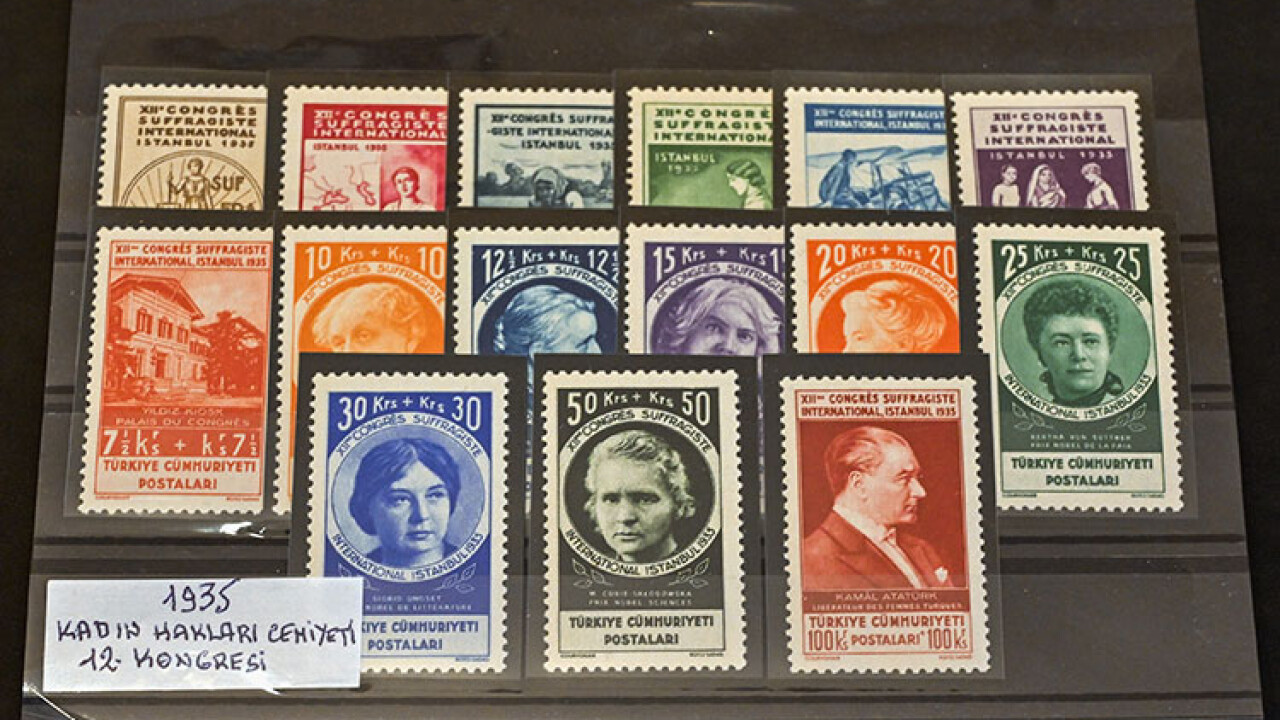 "Birincisi mat kağıt üzerine, ikincisi parlak kağıt üzerine aynı şekilde basımı yapıldı. Cumhuriyet döneminin son pullarından, Yıldız Sarayı'nda Kadın Hakları Cemiyeti'nin 12. Kongresi dolayısıyla 'kadın hakları'na ilişkin basılan puldur. Biz, seriyi 'Kadınlar Kongresi' diye anıyoruz. 15 seriden oluşan bu serinin son değerinin üzerinde Atatürk resmi vardır. 1930'da Ankara-Sivas Demir Yolu Hattı'nın açılışı dolayısıyla basılan pullar üzerine 'Sivas Demir Yolları 1930' diye siyah sürşarj yapıldı."