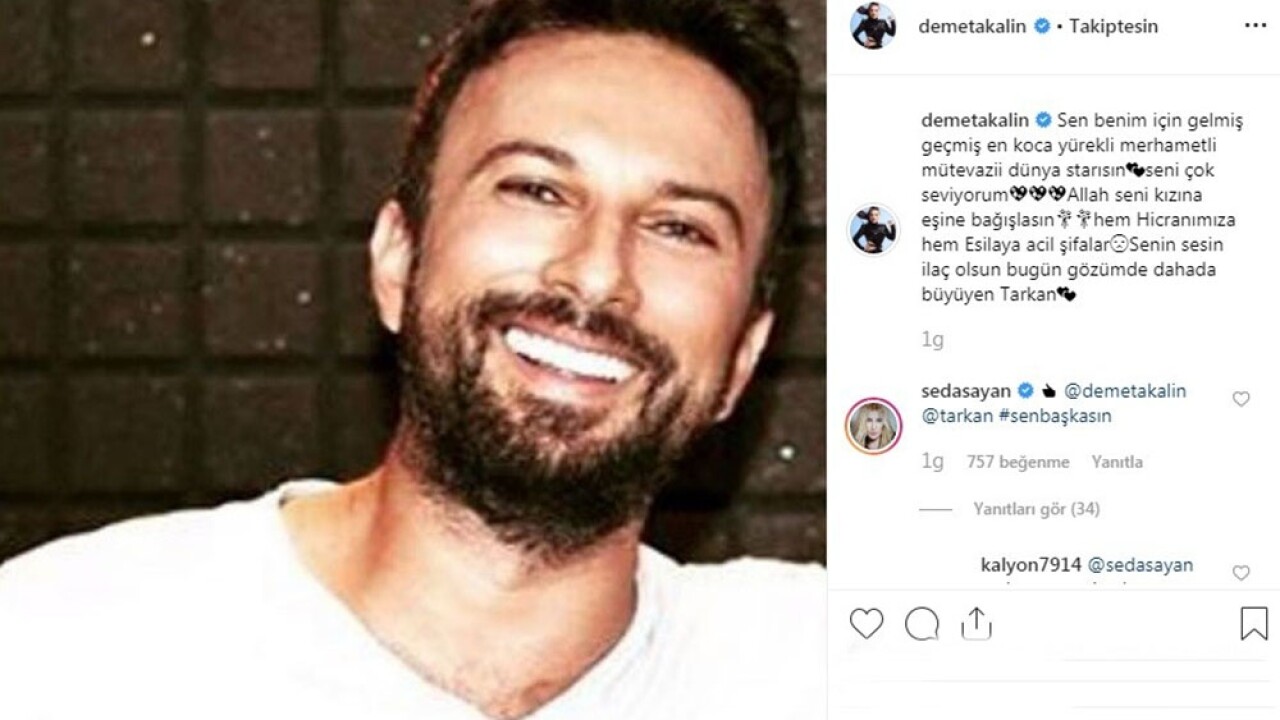 Demet Akalın, megastar Tarkan’ın fotoğrafının altına, "Sen benim için gelmiş geçmiş en koca yürekli, merhametli, mütevazi dünya starısın! Seni çok seviyorum... Allah seni kızına, eşine bağışlasın... Hem Hicran’ımıza hem Esila’ya acil şifalar... Senin sesin ilaç olsun, bugün gözümde dahada büyüyen Tarkan!" notu düşerek Instagram hesabından paylaşımda bulundu. Ünlü şarkıcının bu paylaşımı sosyal medyada Tarkan hayranları tarafından kısa süreli paniğe neden oldu. Akalın ikinci bir mesaj yayınlayarak, "Çok hasta bir kızı aradı!" dedi.