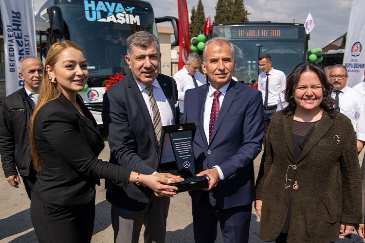 Kentin ulaşım altyapısını güçlendirmek adına önemli bir adım attıklarını belirten Denizli Büyükşehir Belediye Başkanı Osman Zolan; “Şehrimizin her köşesine ulaşımı kolaylaştırmak ve vatandaşlarımızın yaşam kalitesini artırmak için çalışıyoruz. Mercedes-Benz Türk tarafından üretilen modern ve yenilikçi otobüslerimizle, çevreye duyarlı ulaşım hizmetini hayata geçirirken aynı zamanda vatandaşlarımıza güvenli ve konforlu bir seyahat deneyimi sunacağız. Şehrimizin sürdürülebilir kalkınma hedefleri doğrultusunda, geçmişte olduğu gibi bugün de kararlılıkla ilerliyoruz. Filomuza kattığımız yeni otobüslerimizin de hedeflerimize ulaşmamızda önemli bir kilometre taşı olacağına inanıyoruz” dedi.