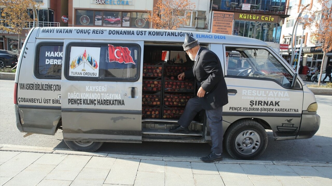 Güvenlik güçlerine meyve götürmesiyle tanınan "Elmacı Dede" lakaplı Yılmaz, bölgede görev yapan askerlere desteğini sürdürüyor.