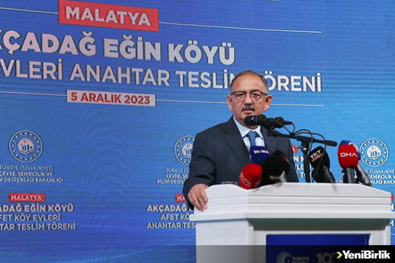 Çevre, Şehircilik ve İklim Değişikliği Bakanı Mehmet Özhaseki, Malatya Büyükşehir Belediyesi Nikah Sarayı'nda düzenlenen "Afet Köy Evleri Anahtar Teslim Töreni"ne katıldı. Deprem bölgesindeki illerin şehir merkezlerinde yapılacak 22 bin konutun temelinin atıldığı törende Özhaseki, hazır olan köy evlerinden 8'inin hak sahibine anahtarını teslim etti.