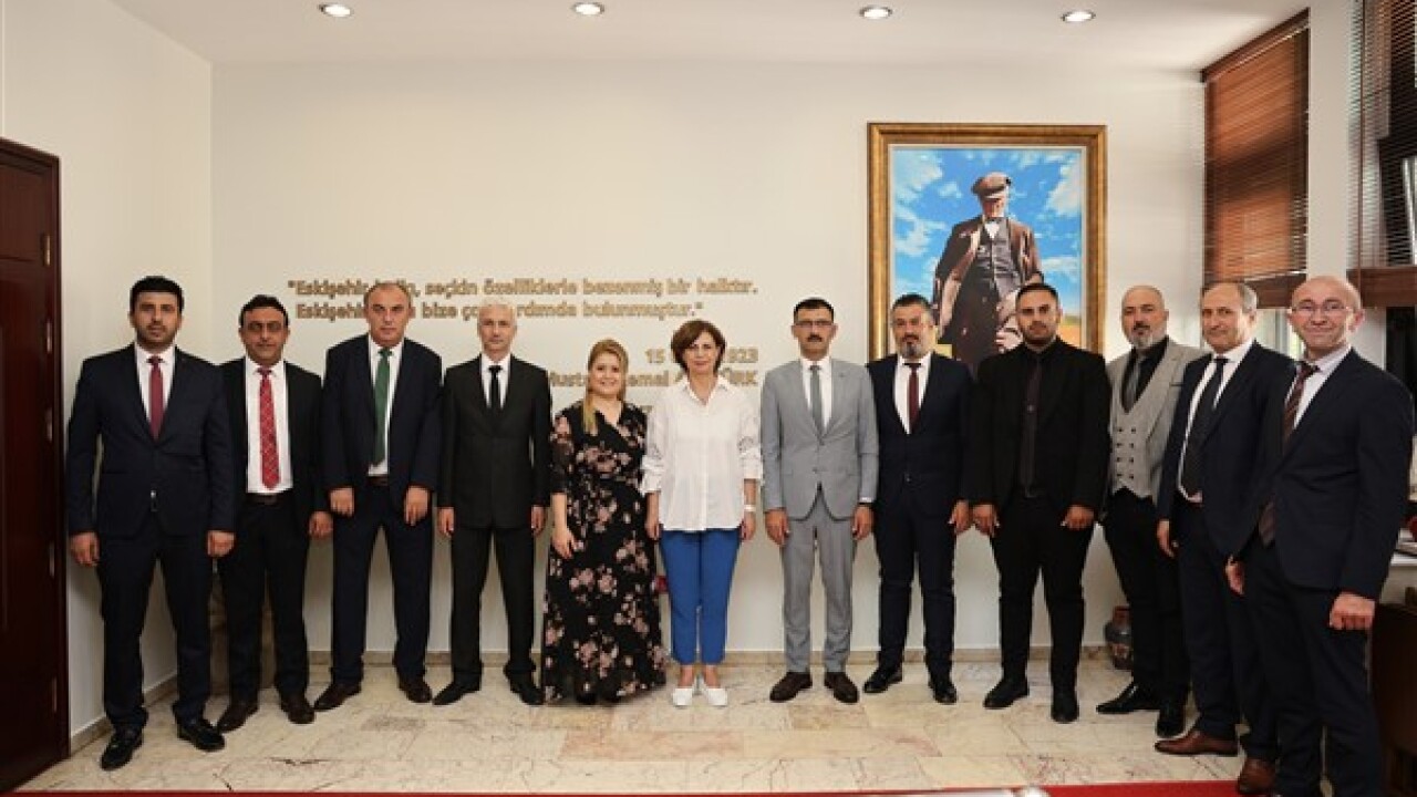 Eskişehir Servis Araçları İşletmecileri Odası Başkanı Muhammed Ahmetcan Günay, Sücaaddin Veli Kültür ve Turizm Derneği Başkanı Hasan Ali Uzun ve yönetim kurulu üyeleri Büyükşehir Belediye Başkanı Ayşe Ünlüce’yi ziyaret ederek, görevinde başarılar diledi.