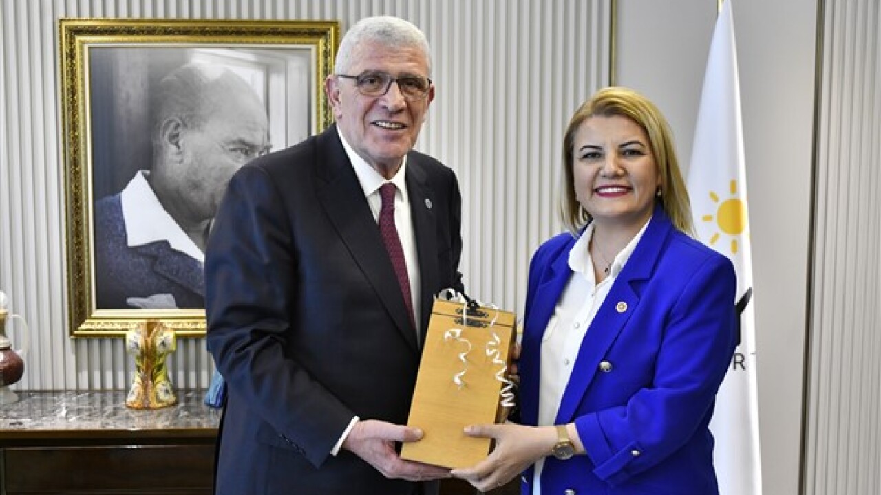 İYİ Parti Genel Başkanı Dervişoğlu, hayırlı olsun ziyaretinde bulunan İzmit Belediye Başkanı Kaplan ile İYİ Parti Genel Merkezi binasındaki makamında bir araya geldi.