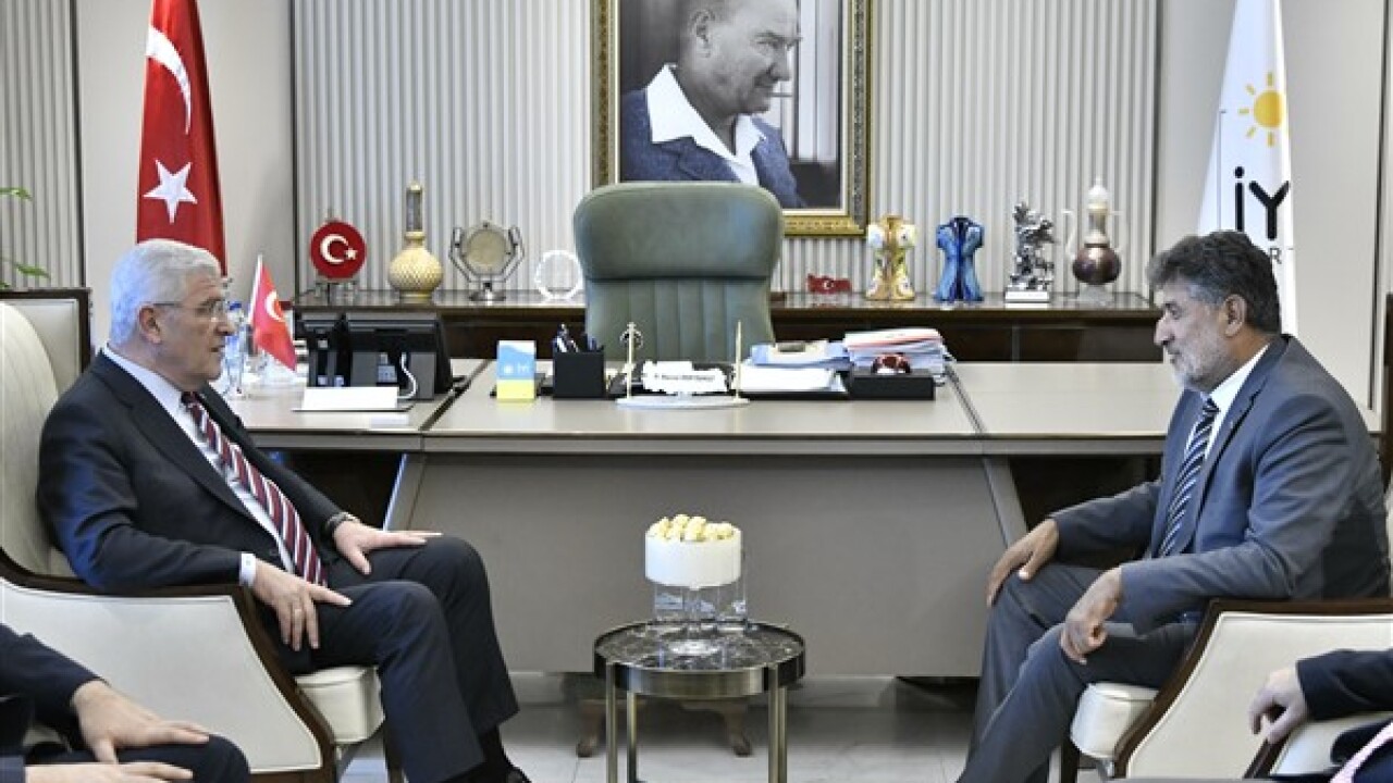 İYİ Parti Genel Başkanı Müsavat Dervişoğlu, Milli Yol Partisi Genel Başkanı Remzi Çayır ile İYİ Parti Genel Merkezi'ndeki makamında bir araya geldi.