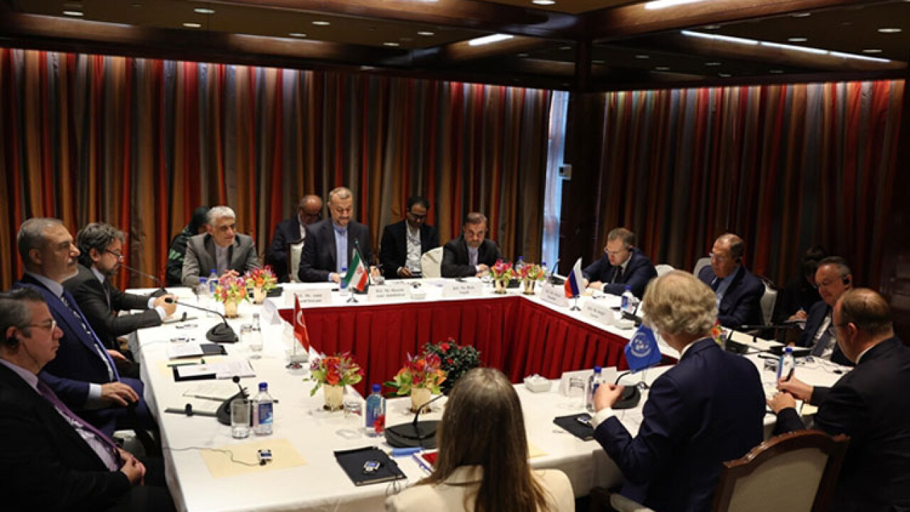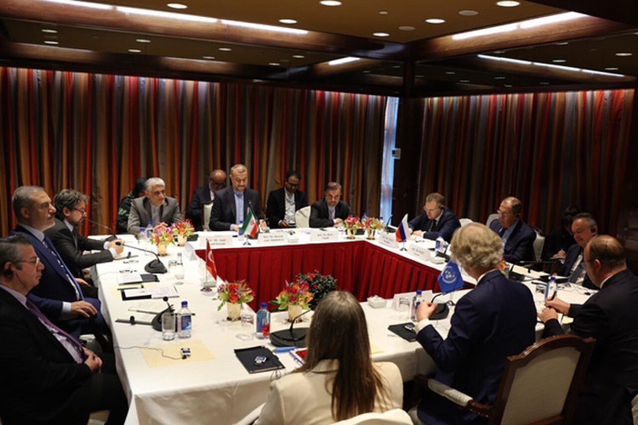 Paylaşımda, Bakan Fidan, İran Dışişleri Bakanı Hüseyin Emir Abdullahiyan, Rusya Dışişleri Bakanı Sergey Lavrov'un da bulunduğu bir fotoğrafa yer verildi.