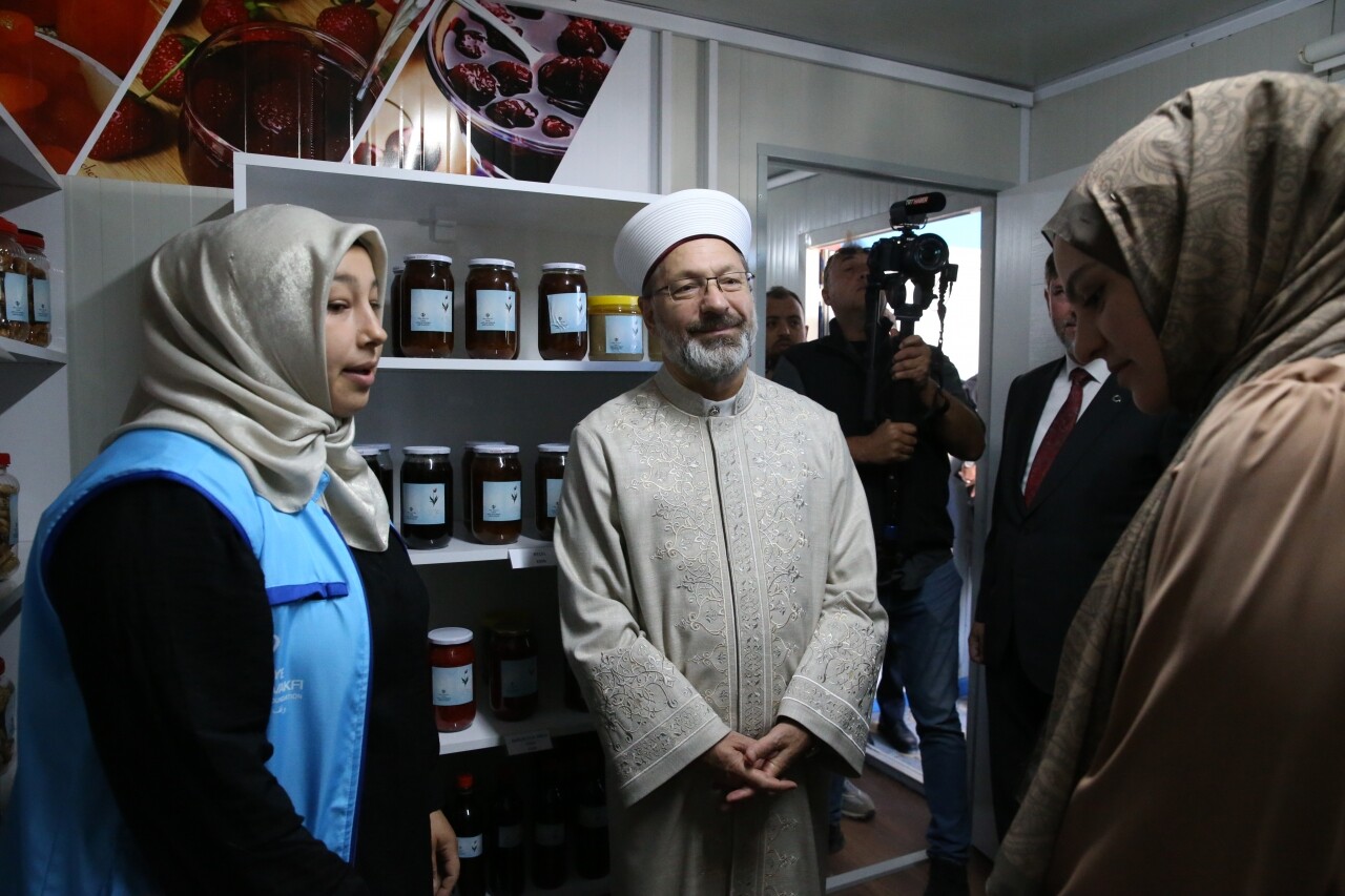 Görüşmenin ardından Türkiye Diyanet Vakfı Güzel İşler Merkezi'ne geçen Erbaş, buradaki terzi atölyesi ve kütüphane ile kadınların yöresel ürünlerinin sergilendiği alanı inceledi.