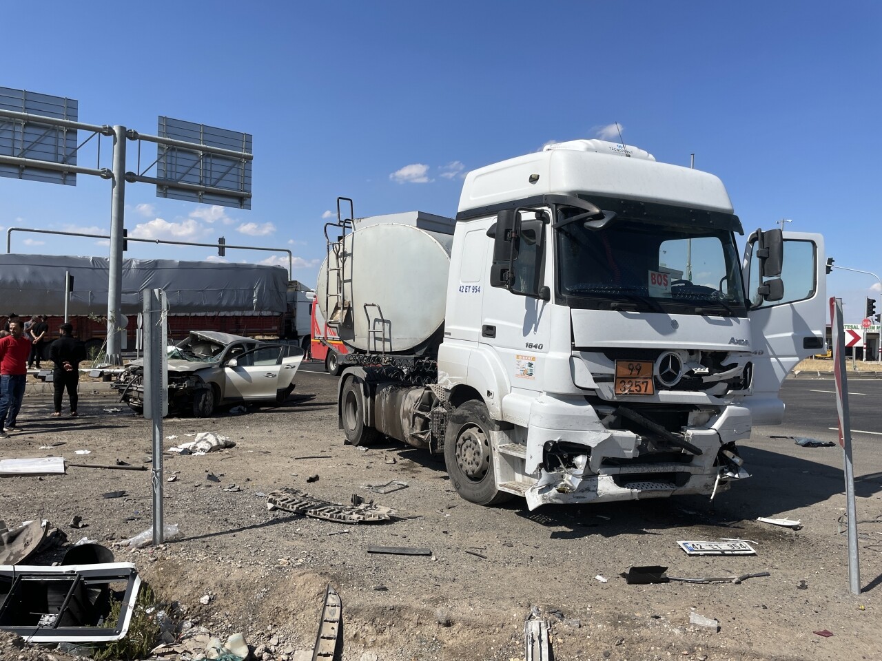 A.A. idaresindeki 42 ET 954 plakalı yakıt tankeri, merkez Bağlar ilçesi Diyarbakır çevre yolu Viranşehir Kavşağı'nda Ahmet K'nin kullandığı 26 AGT 075 plakalı otomobile çarptı.