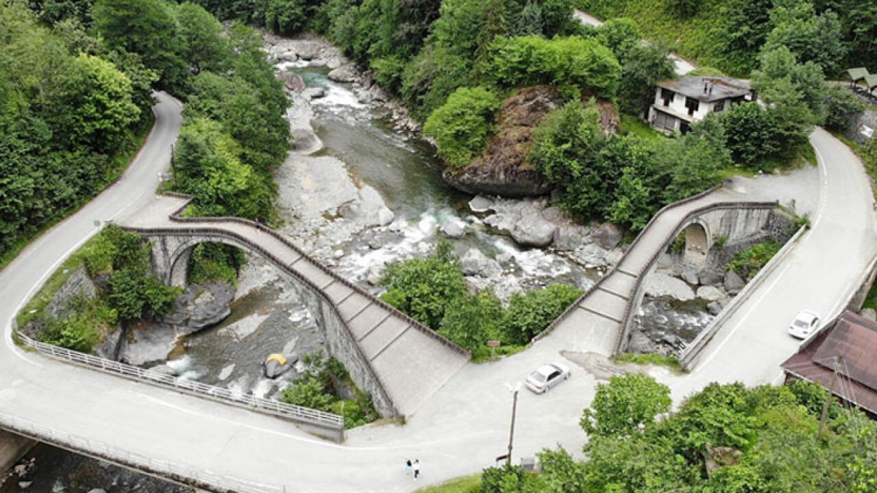 Artvin'in Arhavi ilçesinde, Osmanlı mimarisi taş işçiliğinin en güzel örneklerinden "Çifte Köprüler", asırlara meydan okuyan ihtişamlı görüntüsüyle ilçeyi ziyaret edenlerin uğrak yerleri arasında yer alıyor.