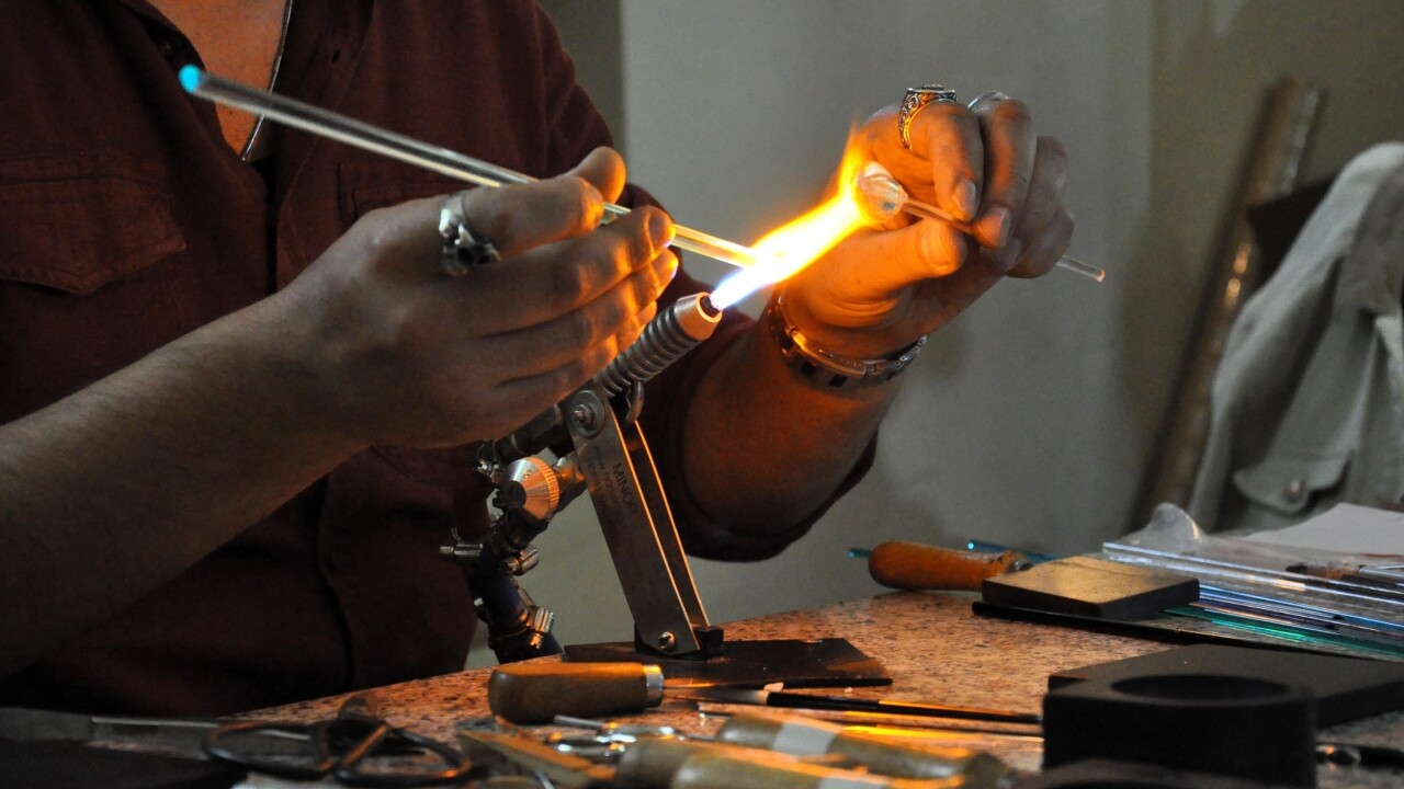 Çocuk yaşlarda başladığı cam sanatında 9 yıl önce kendisine atölye açan 36 yaşındaki cam ustası Serbay Doru, balık, bitki, böcek ve kelebek gibi cam figürleri süs eşyalarına dönüştürüyor.