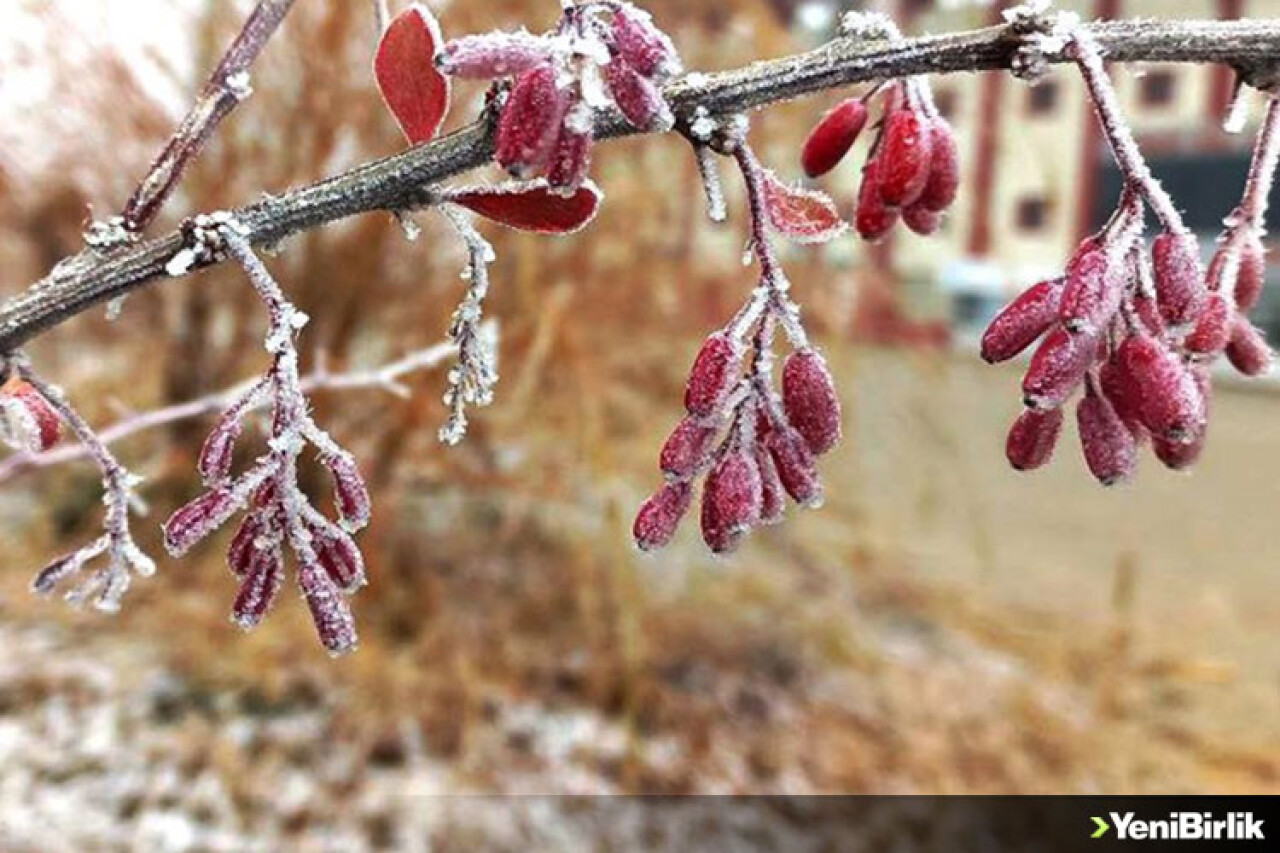 Ağaçlar ve bitkilerde kırağı oluştu, araç camları buz tuttu.