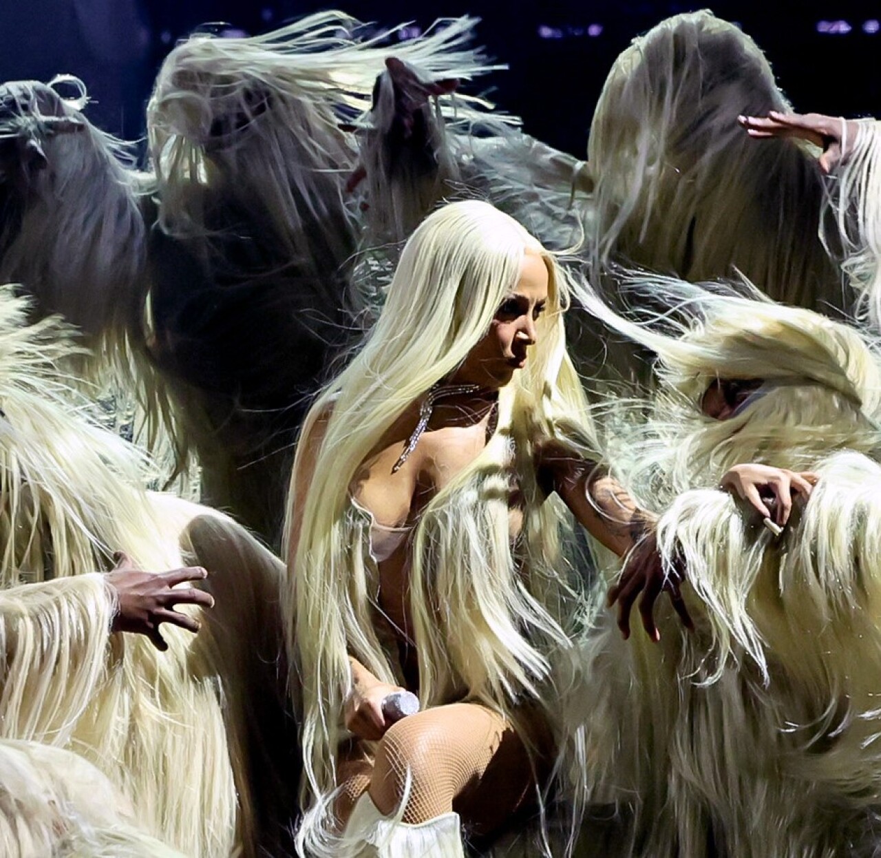 Cascade kolyesini pırlantalı yuvarlak kesimli küpeleri ile kombinleyen sanatçı, şovuna Acknowledge Me parçasıyla başladı. Sonrasında, Güney Afrikalı “acapella” grubu The Joy’un beş erkek müzisyeni eşliğinde Shutcho’ya geçiş yaparak ışıltı dolu Messika mücevherleri ile performansını sürdürdü.