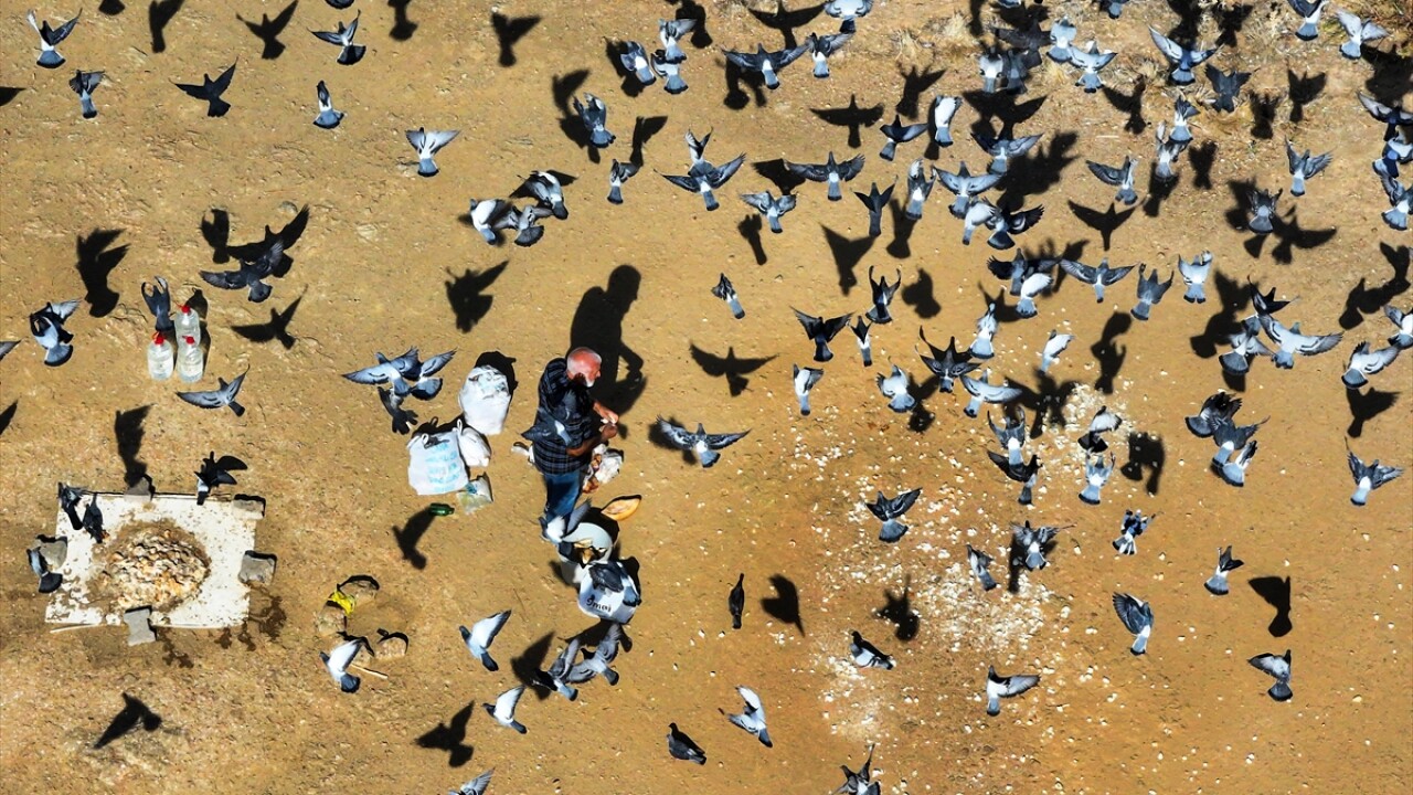 "Tek başıma olduğumda omzumun üzerine konuyorlar ama yabancı gelince korkuyorlar. Aramızda çok özel bir bağ var, yakalayıp öpüyorum, hoşlarına da gidiyor. Sularını da getiriyorum. Bazen pirinç pilavı bulup getiriyorum, o daha çok hoşlarına gidiyor. Çok güzel bir duygu, gurur verici bir şey. Nasıl olsa öleceğim ama orada belki bizi gözetlerler, günahlarımız affedilir. Allah ömür verdikçe güvercinleri beslemeye devam edeceğim."