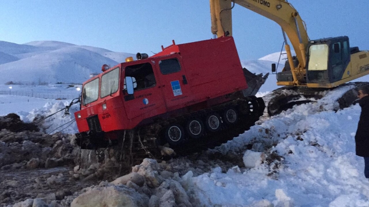 Bingöl’ün Karlıova ilçesinde donan barajın buzların kırılması sonucu suya gömülen paletli araç, ekiplerin 10 saatlik çalışması sonucu kurtarılabildi.