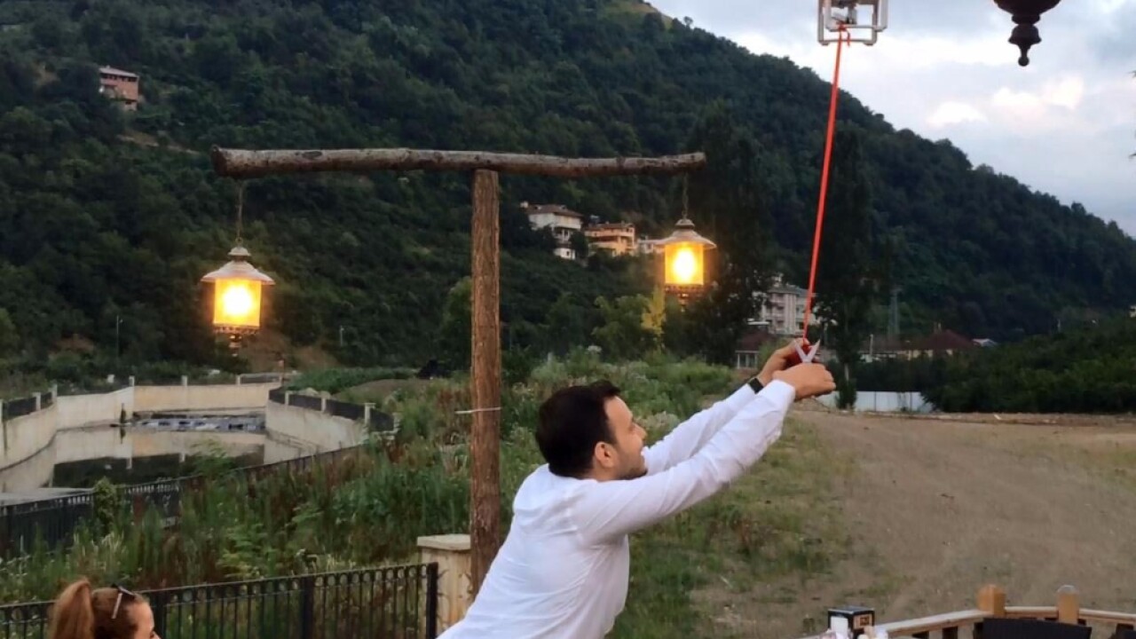 Trabzon’da yerel bir gazetede Haber Müdürlüğü görevi yürüten gazeteci Hakan Şener (27), özel bir sağlık kuruluşunda ebe olarak görev yapan Ülkü Aktürk’e (23) ilginç bir yöntemle evlenme teklifinde bulunmaya karar verdi. Şener, Aktürk’ü gezme ve yemek yeme bahanesiyle önceki gün Sera Gölü’ne götürdü. Burada bir restoranda oturan genç çiftin sohbeti sırasında Şener, arkadaşı aracılığı ile bulunduğu yere gönderilen Drone’ye kırmızı iple bağlı olan yüzüğü alıp Aktürk’e evlenme teklif etti.