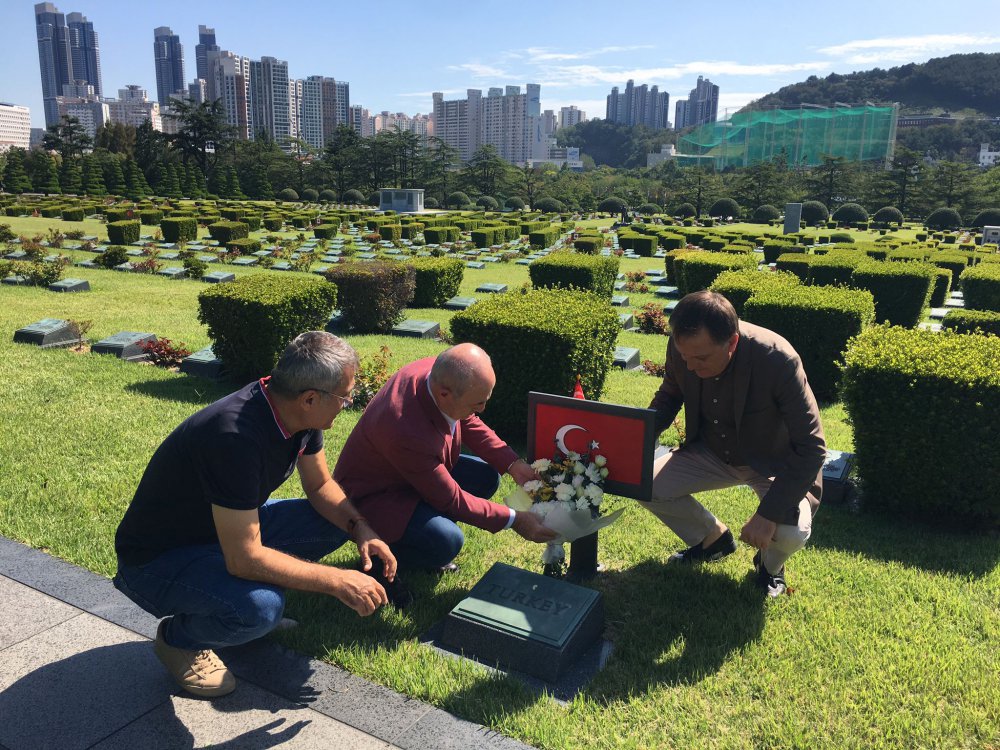 Uluslararası Dans Festivalleri Federasyonu’nun Genel Kurulu’na katılmak üzere Güney Kore’ye giden Büyükçekmece Belediye Başkanı Dr. Hasan Akgün Güney Kore’deki Birleşmiş Milletler Kore Anıtsal Mezarlığı'ndaki Türk Şehitliğini ziyaret etti. Akgün, Güney Kore'nin Busan şehrinde 1950-1953 yılları arasında Kore Savaşı'nda hayatını kaybeden Birleşmiş Milletler askerleri için yaptırılan Anıtsal Mezarlık içinde Kore Savaşı'nda şehit olan 724 Türk askerinin 462'sinin defnedildiği Türk Şehitliğin'de dua okudu. Ziyaretin ardından Koreli yetkililerden Şehitlik ve Anıtsal Mezarlık hakkında bilgi alan Akgün, “Kore’de, kardeş şehir Cheonan Dünya Dans Festivali ve FİDAF (Dünya Dans Festivalleri Federasyonu) Kongresindeyiz. Öncelikle binlerce kilometre uzakta, mazlum Kore halkının kurtuluşu için şehit düşen kahraman askerlerimizin şehitliğini ziyaret edip duamızı yaptık. Ruhları şad, mekanları cennet olsun” dedi.