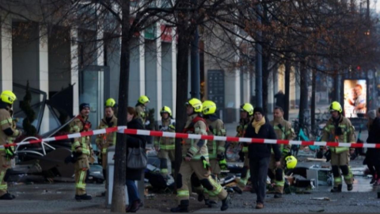 Berlin polisi yaptığı açıklamada bir otel binasının zarar gördüğü, parçalarının sokağa döküldüğünü belirtti.
