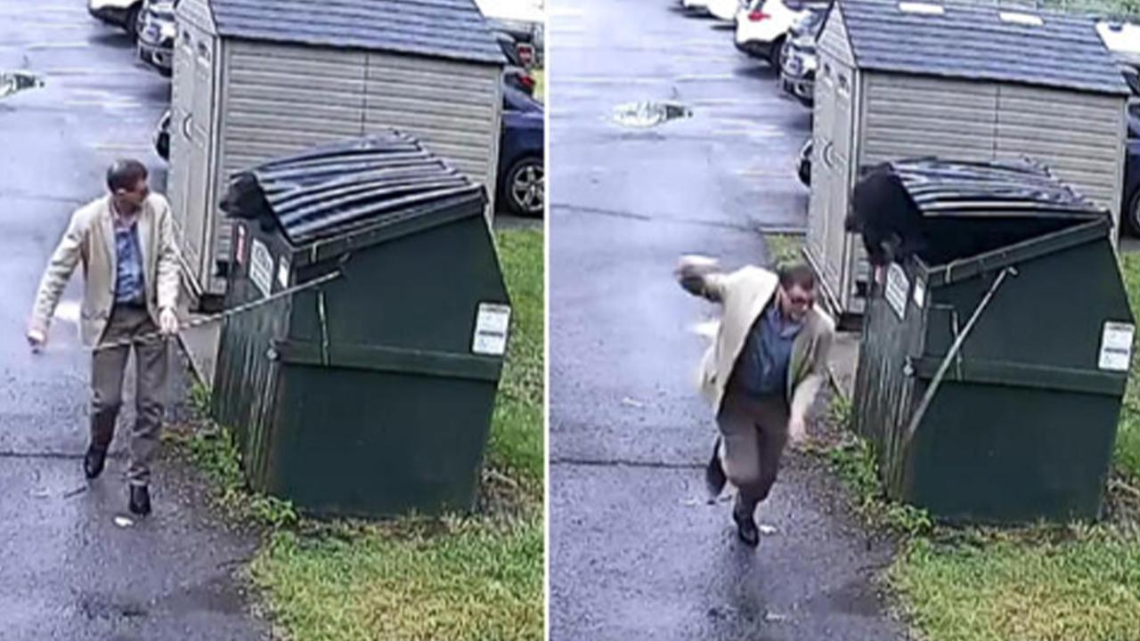 Okul müdürü James Marsh, okul bahçesindeki çöp konteynerinin kapağında bulunan kilidi açtı. Görüntülerde, kilidin açılmasıyla siyah bir ayının aniden konteynerden dışarıya atladığı görüldü.