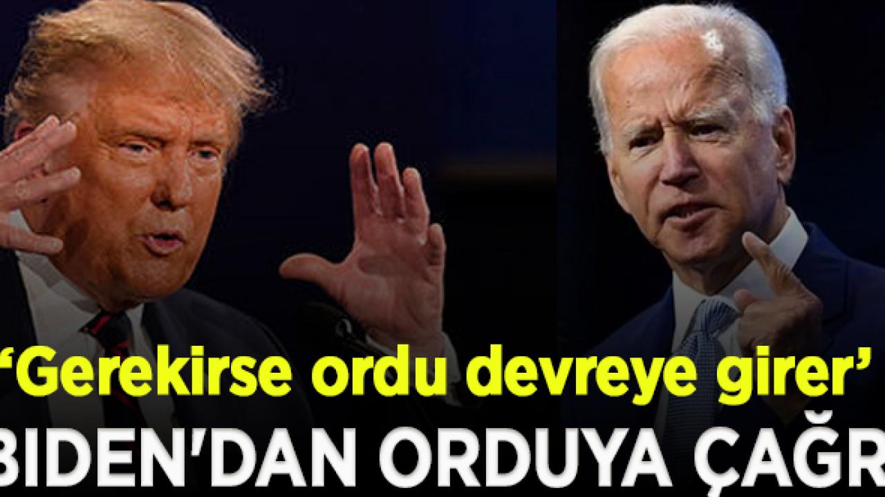 Gergin geçen seçim sürecinin ardından Trump'ın sıradaki hamlesi beklenirken; Joe Biden'dan dikkat çeken bir açıklama geldi. Biden, "Trump, Beyaz Sarayı bırakacak mı?" sorusuna karşılık olarak; "Gerekirse ordu devreye girer ve onu çıkartır" dedi.