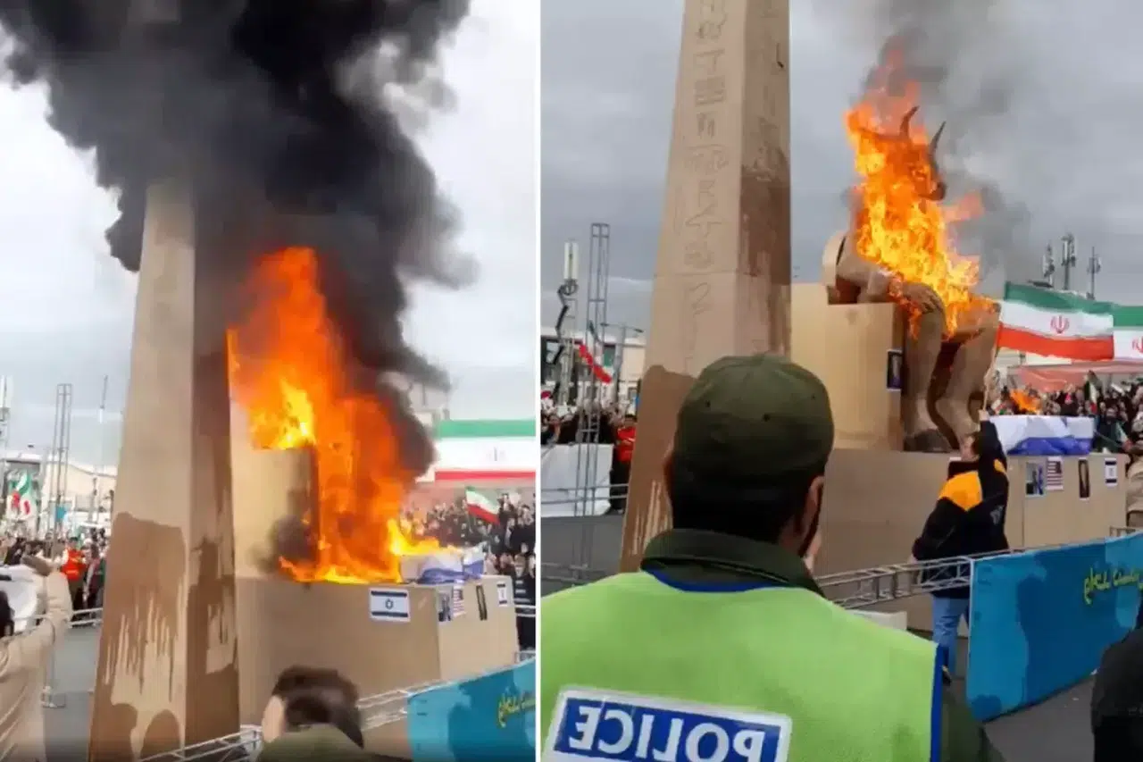 Uluslararası medyaya yansıyan görüntülerde, protestocuların üzerine Mührü Davut (Star of David) işareti yerleştirilmiş ve “Baal” etiketi bulunan bir kuklayı yaktığı görüldü. Göstericilerin eylem sırasında İsrail karşıtı sloganlar attığı kaydedildi.
