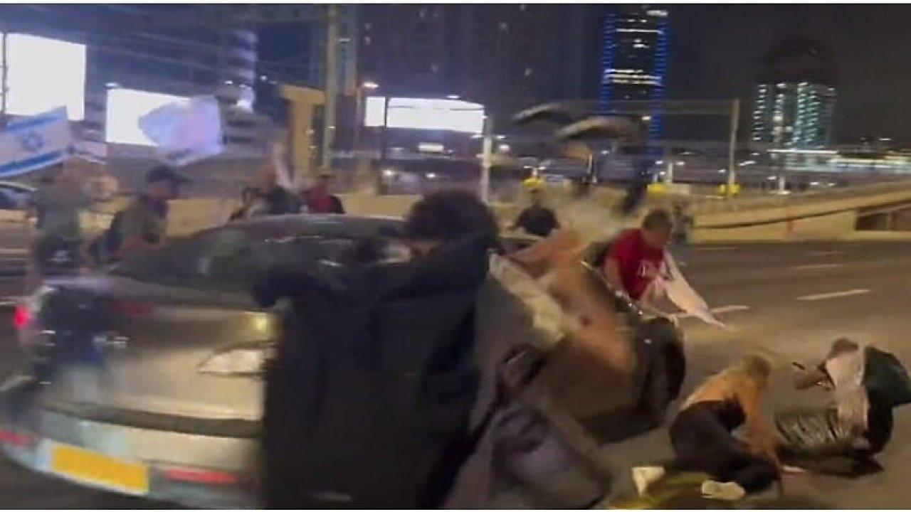 İsrail bayrakları taşıyan protestocular davullar, düdükler ve havalı kornalarla ritim tutarak "demokrasi" sloganları attı.