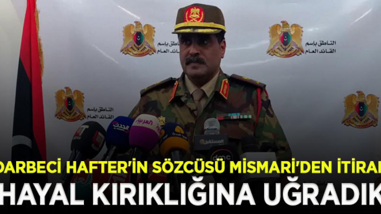 Libya’nın doğusundaki gayrimeşru silahlı güçlerin lideri Halife Hafter’in Sözcüsü Ahmed el-Mismari’den itiraf gibi açıklama geldi.Suudi Arabistan basınına konuşan Mismari, Libya ordusunun Terhune kentini silah gücü ve askeri üstünlük sonucu almadığını öne sürerek, bazı ülkelerin kendilerini hayal kırıklığına uğrattığını ve kendilerinden desteğini çektiğini söyledi. Mismari, "Libya hükümeti Terhune'yi silah gücü ve askeri üstünlük sonucu almadı. Bazı ülkeler bizi hayal kırıklığına uğrattı" ifadesini kullandı. Mismari, Türkiye'nin Libya'ya müdahalesi ve farklı silahların sahada kullanılmasının ardından Hafter güçlerinin strateji değişikliğine gittiğini ifade etti.