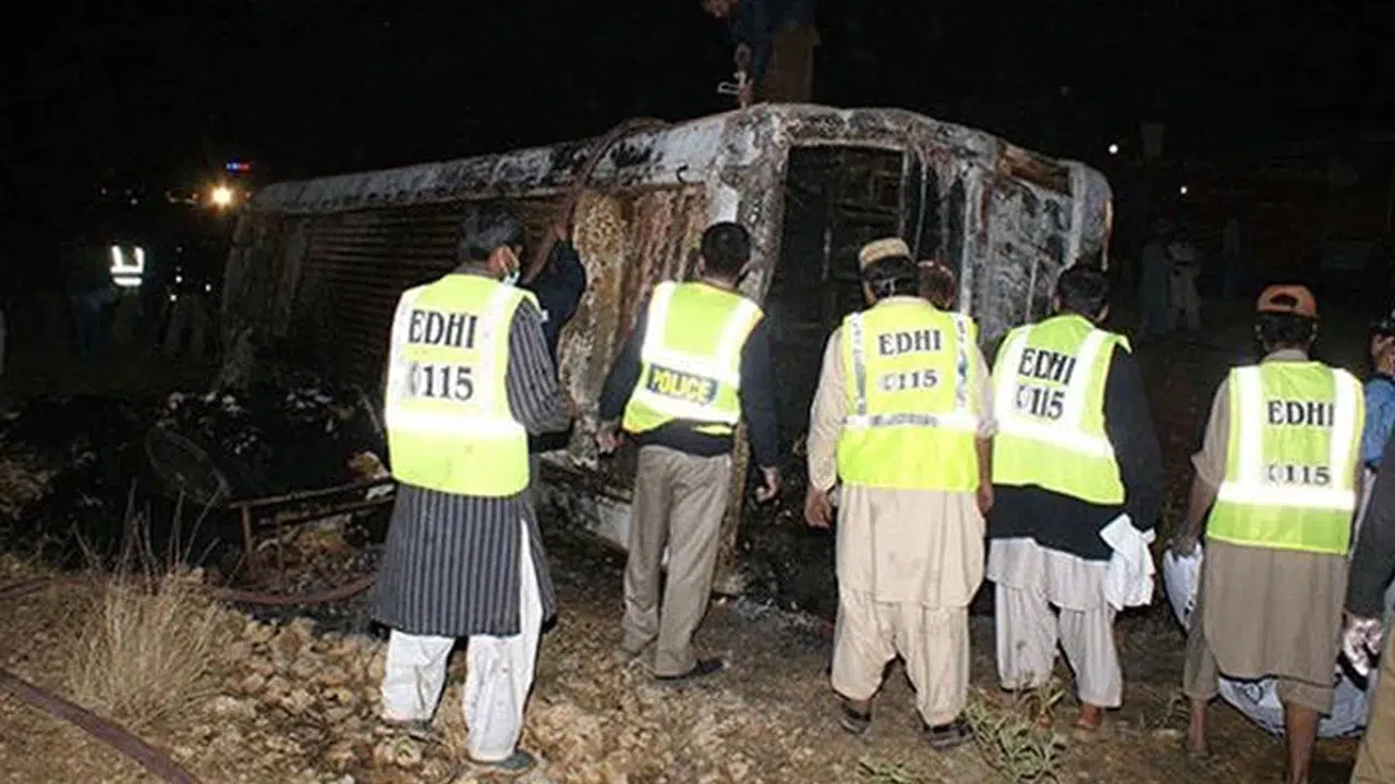 Bir kamyonun orta refüjü aşarak karşı yönden gelen bir yataklı yolcu otobüsüne çarptığını belirten yetkililer, çarpışmanın ardından otobüsün alev aldığını kaydetti.