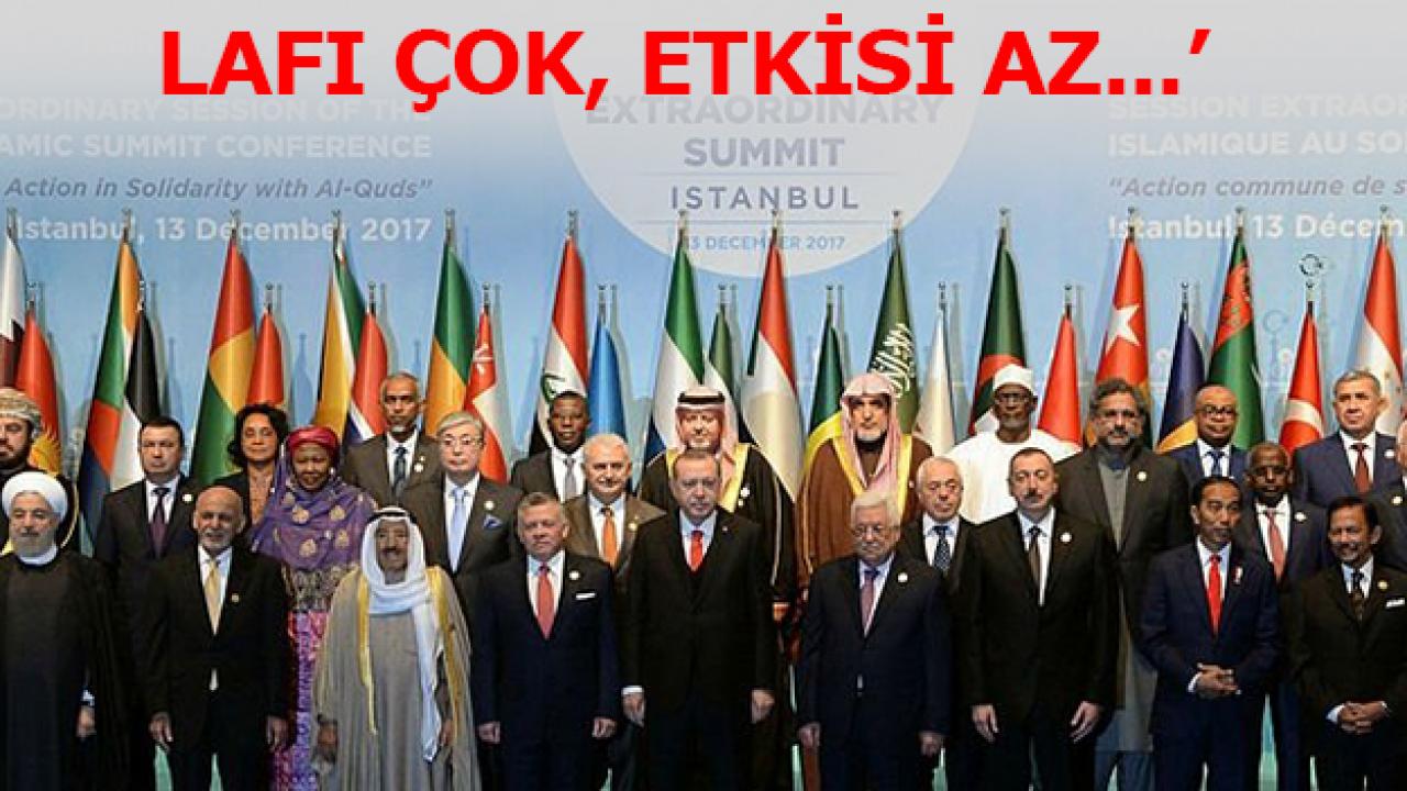 1969’dan bu yana İslam İş Birliği Teşkilatı diye bir kuruluş var. 57 üye ülkeden oluşan ve 60 yıllık tarihi olan İslam İş Birliği Teşkilatı’nın bana göre en kısa tanımı şudur: Sözü çok, etkisi az bir kuruluş!
