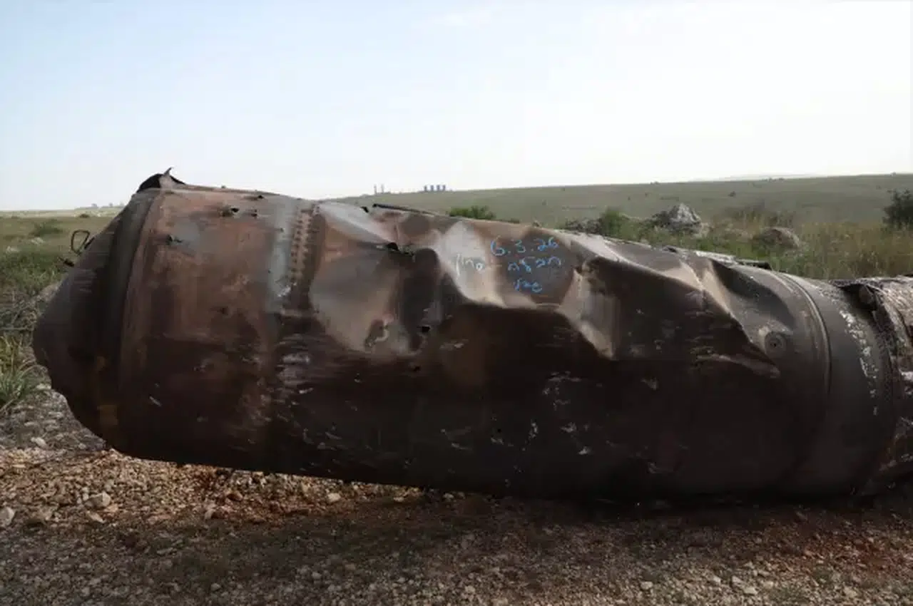 Tel Aviv yakınlarında Elad kenti kırsalında, İsrail hava savunma sistemleri tarafından etkisiz hale getirilen bir füze görüntülendi. Füzenin boyutu ve büyüklüğü dikkat çekti.