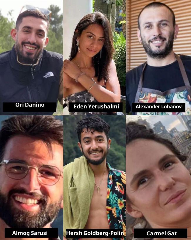 IDF’ten yapılan açıklamada, “Carmel Gat, Eden Yerushalmi, Hersh Goldberg-Polin, Alexander Lobanov, Almog Sarusi ve Başçavuş Ori Danino'nun cesetleri dün bulunarak çıkarıldı. Hepsi 7 Ekim'de rehin alınmış ve Gazze'de esaret altındayken Hamas tarafından öldürülmüştü. IDF ve ISA ailelere en içten başsağlığı dileklerini iletmektedir. İsrail güvenlik güçleri tüm rehineleri mümkün olan en kısa sürede evlerine getirmek için tüm imkanlarıyla çalışmaktadır” denildi.