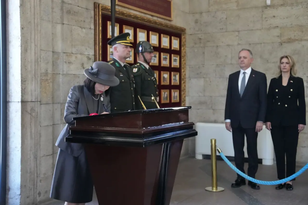 Anıtkabir ziyaretinde Prenses Akiko’ya, Kültür ve Turizm Bakan Yardımcısı Gökhan Yazgı ile Japonya’nın Ankara Büyükelçisi Katsumata Takahiko eşlik etti.