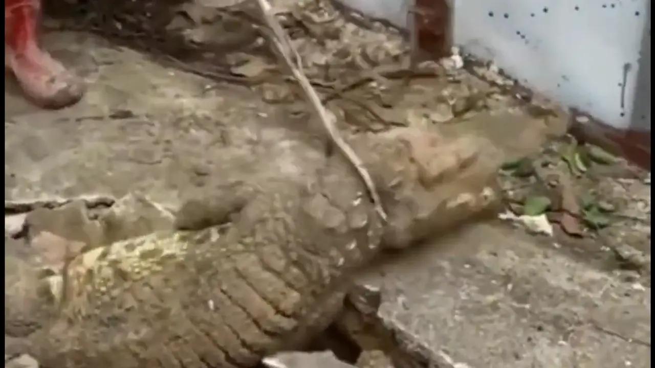 Hindistan'da halk, mahallenin kaldırımından gelen sesler üzerine ortaya çıkan manzara karşısında şoke oldu. 3 timsahı birden gören mahalleli, büyük korku yaşadı. O anlar kamera ile görüntülendi.