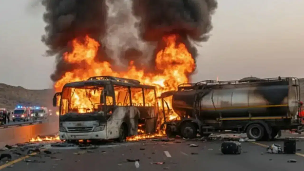 Suudi Arabistan’ın Medine kenti yakınlarında meydana gelen trafik kazasında, umrecileri taşıyan bir otobüs yakıt tankerine çarptıktan sonra alev aldı. Kazada 45 kişi hayatını kaybetti, sadece bir yolcunun kurtulduğu açıklandı.