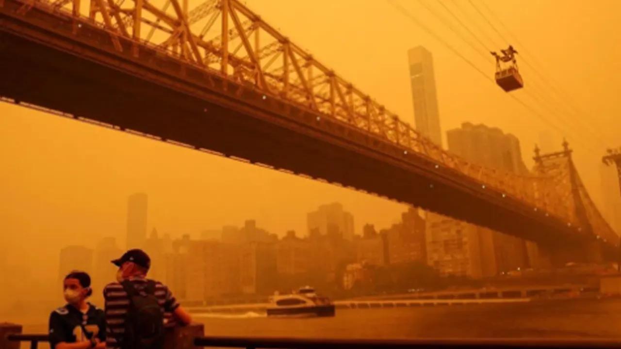Gün boyu puslu havaya sebep olan New York'taki yangın dumanlarının kokusu hissedilirken, yetkililer, özellikle kalp, akciğer ve solunum yollarına bağlı rahatsızlığı olanları dışarı çıkmama konusunda uyarıyor.