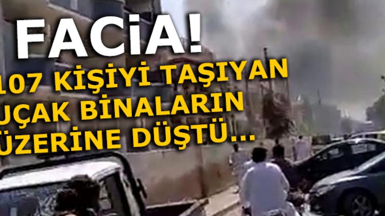 Pakistan Uluslararası Havayolları’na ait bir uçağın, ülkenin Karaçi kenti yakınlarında binaların üzerine düştüğü belirtildi.