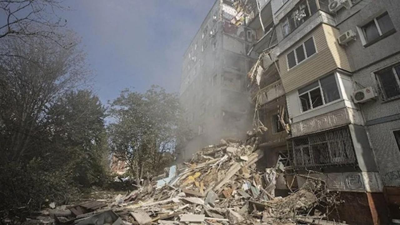Rus güçleri, 6 Ekim’de de Zaporijya şehir merkezinde bir binaya roket saldırısı düzenlemiş ve 17 kişinin öldüğü açıklanmıştı. (AA)