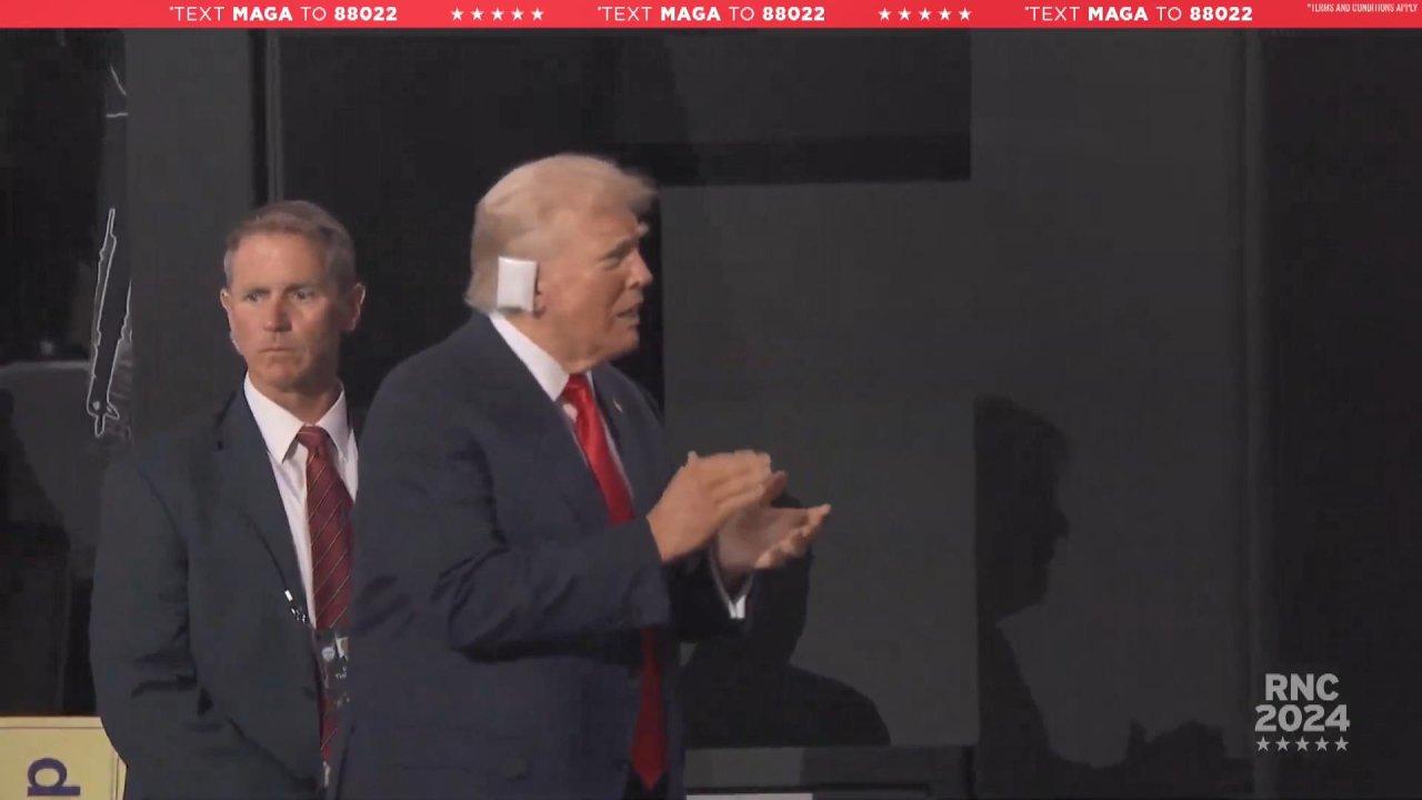 Trump, suikast girişiminden sonra bugün Wisconsin eyaletindeki Milwaukee kentinde düzenlenen Cumhuriyetçi Parti Ulusal Kongresi'ne katıldı. RNC tarafından paylaşılan görüntülerde, Trump'ın sağ kulağında bandaj olduğu görüldü.