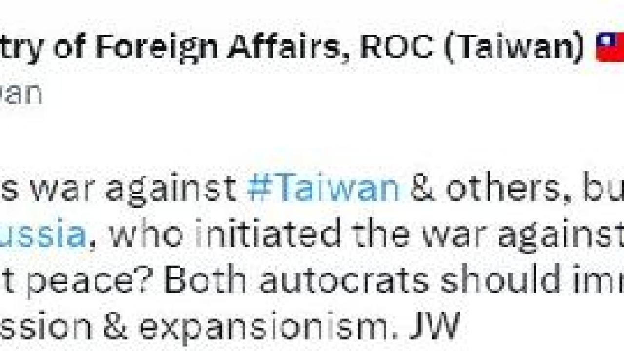 Tayvan Dışişleri Bakanlığı resmi sosyal medya hesabından yapılan paylaşımda, Çin Devlet Başkanı Şi Cinping’in Rusya ziyareti değerlendirildi. Cinping’in Rusya-Ukrayna savaşına yönelik barış planıyla Rusya’ya gittiği yönündeki açıklamalara yanıt verilen paylaşımda, “Çin Halk Cumhuriyeti, Tayvan ve diğerlerine karşı savaş tehdidinde bulunurken, Ukrayna'ya karşı savaşı başlatan Rusya'ya bir barış planı önermek istiyor. Biz aptal değiliz. Barış mı istiyorsunuz? Her iki otokrat da tehditlerini, saldırganlıklarını ve yayılmacılıklarını derhal durdurmalıdır” denildi.
