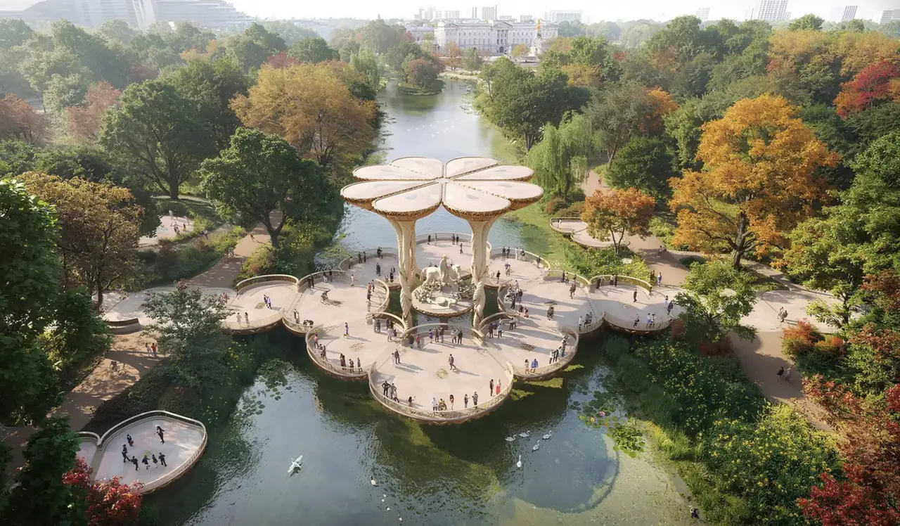 Finale kalan projelerde bronz meşe ağacı, su zambaklarını andıran yürüyüş yolları ve zarif taş köprüler dikkat çekiyor. Tasarımlar, Kraliçe’nin zarif ve sakin duruşunu yansıtacak şekilde doğayla bütünleşen detaylar içeriyor.