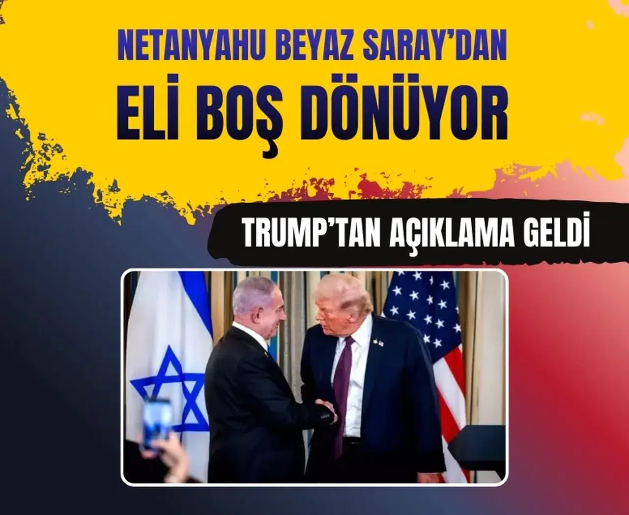 Trump açıklamasında, “Başbakan Netanyahu ve ekibi ile görüşmemi az önce sonlandırdım. Çok iyi bir görüşme oldu, ülkelerimiz arasındaki muazzam ilişkiler devam ediyor. İran'la görüşmelerin devam etmesi ve bir anlaşmaya varılıp varılamayacağının görülmesi konusunda ısrar etmem dışında kesin bir sonuca varılamadı. Başbakanı tercihimin bir anlaşmaya varılmasından yana olduğu konusunda bilgilendirdim. Eğer varılamazsa sonucun ne olacağını görmemiz gerekecek” ifadelerini kullandı.