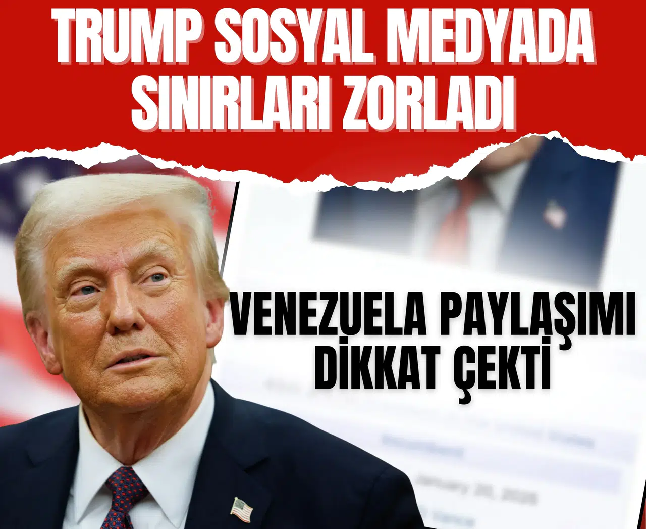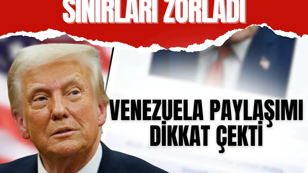 Görseldeki Trump fotoğrafının altında "Venezuela'nın Başkan Vekili" ifadesi dikkati çekti.