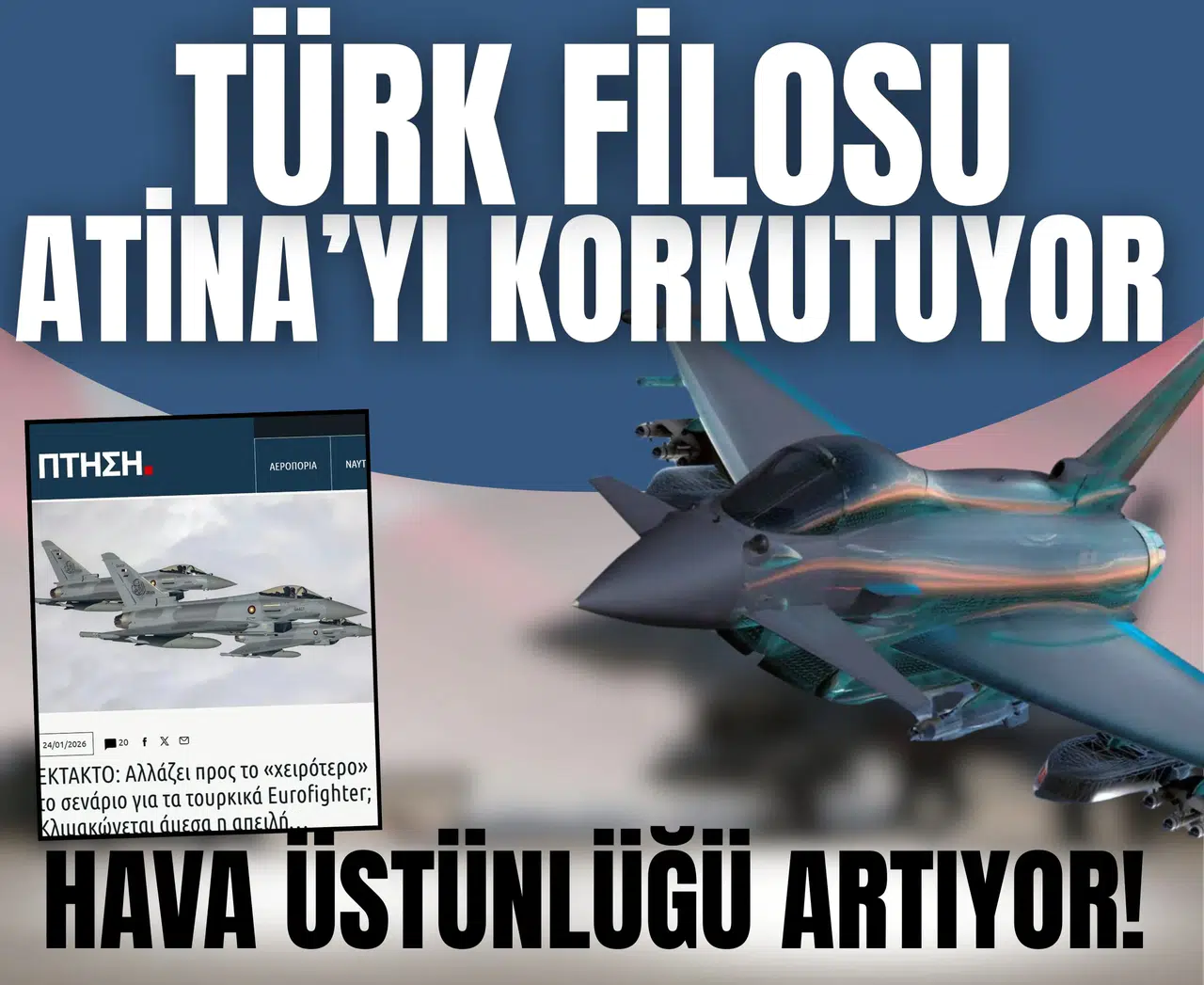 Türkiye’nin Eurofighter Typhoon hamlesi Yunan medyasında korku ve endişe yaratan bir gelişme olarak manşetlerden düşmüyor. Atina basını, Türk Hava Kuvvetleri’nin hızla güçlenen modern hava filosunu yakından takip ediyor.