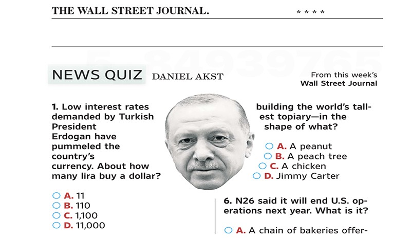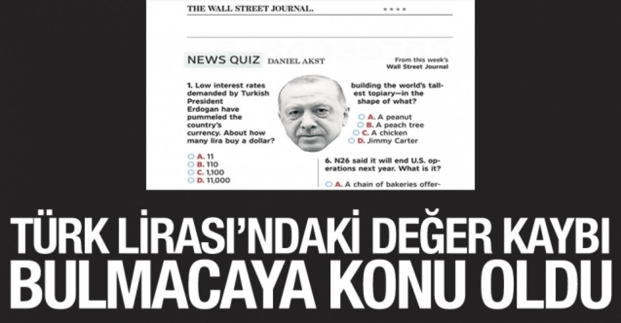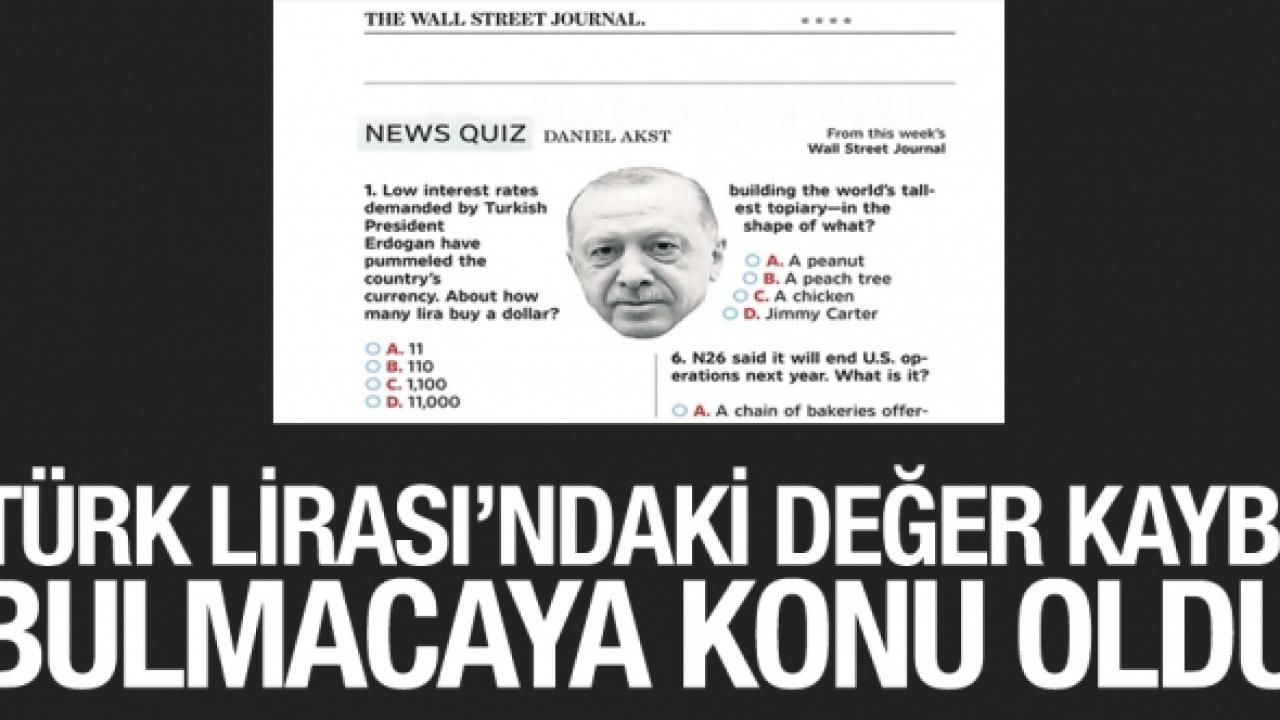 TL'nin değer kaybı uluslararası medyada haber ve köşe yazılarında yankı bulmaya devam ederken Wall Street Journal’da Daniel Akst tarafından hazırlanan haber bulmacası “News Quiz”de bu hafta ilk soru Türkiye ekonomisine ayırdı.