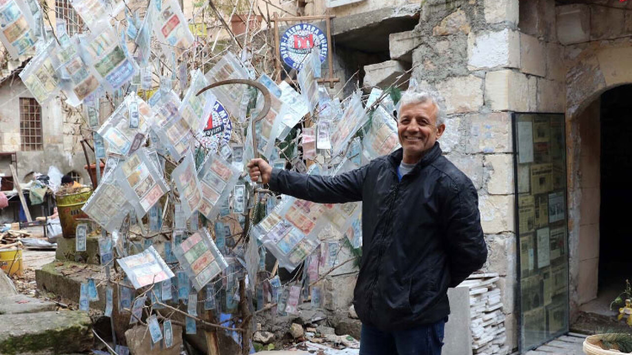 Gaziantep'te para müzesinin sahibi Esat Kaplan, çam ağacını 50 farklı milletin bugünkü karşılığı 3 trilyon olan tarihi paralarla süsledi.