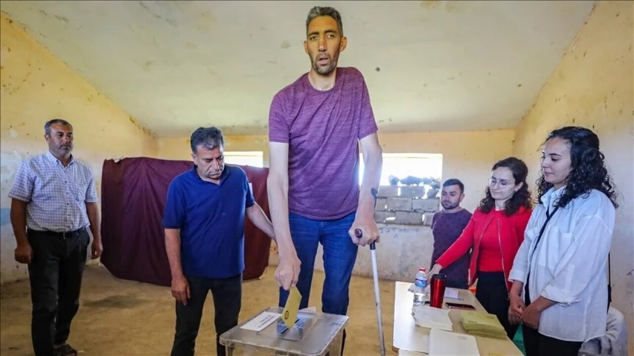 Mardin'de yaşayan 2 metre 51 santimetre boyuyla "dünyanın en uzun boylu adamı" unvanına sahip Sultan Kösen, Cumhurbaşkanı ve 28. Dönem Milletvekili Genel Seçimleri için Mardin'in Derik ilçesinin kırsal Alibey mahallesinde oy kullandı.