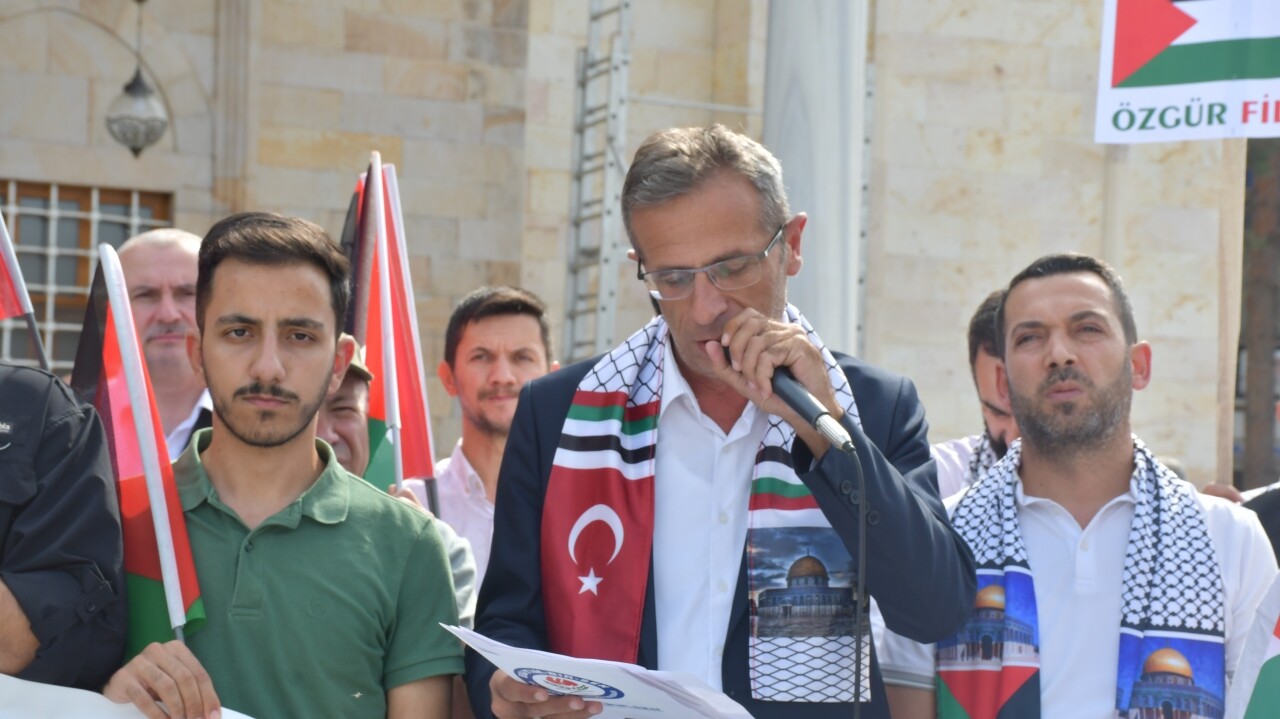 Madenci Anıtı'nda sona eren yürüyüşün ardından topluluk adına basın açıklamasını okuyan Eğitim-Bir Sen Zonguldak İl Başkan Yardımcısı Saadetin Dede, dünyanın kör ve sağır olduğunu, Batılı emperyalist güçlerin, İslam'a ve Müslümanlara karşı düşmanlıklarını, İsrail aracılığıyla gerçekleştirdiğini belirtti.