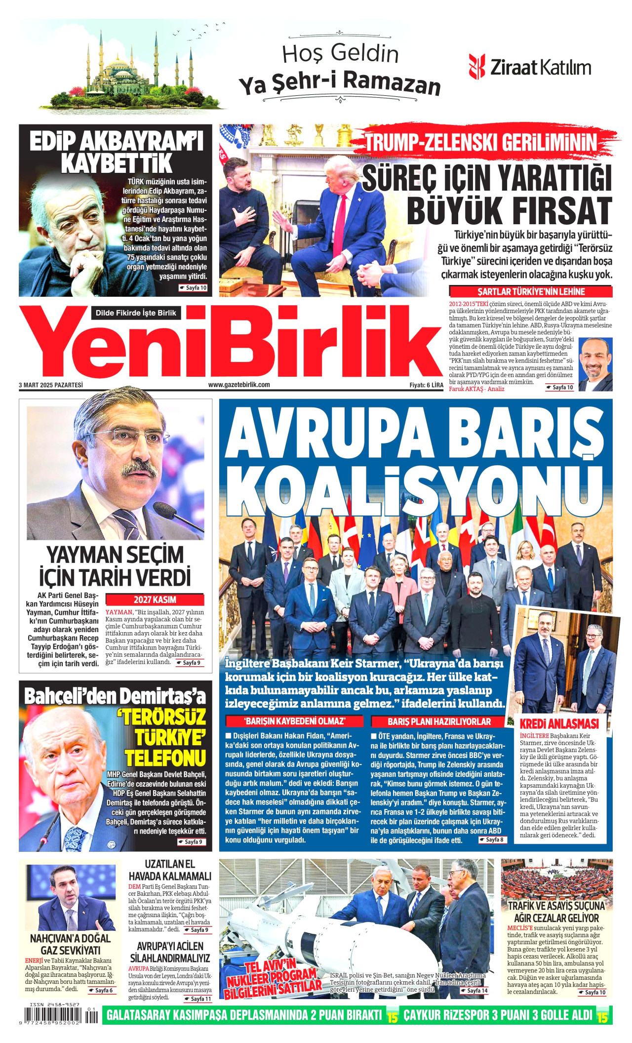 Yeni Birlik Gazetesi | 3 Mart 2025