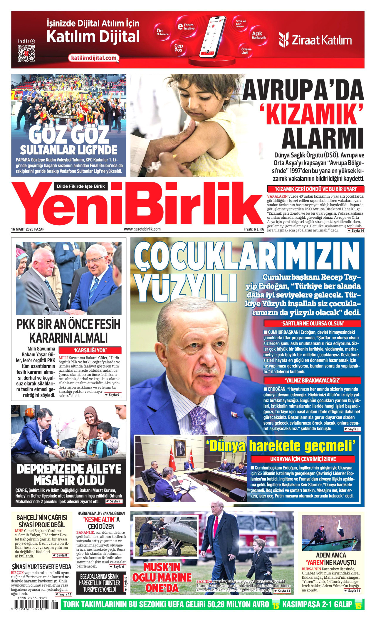Yeni Birlik Gazetesi | 16 Mart 2025