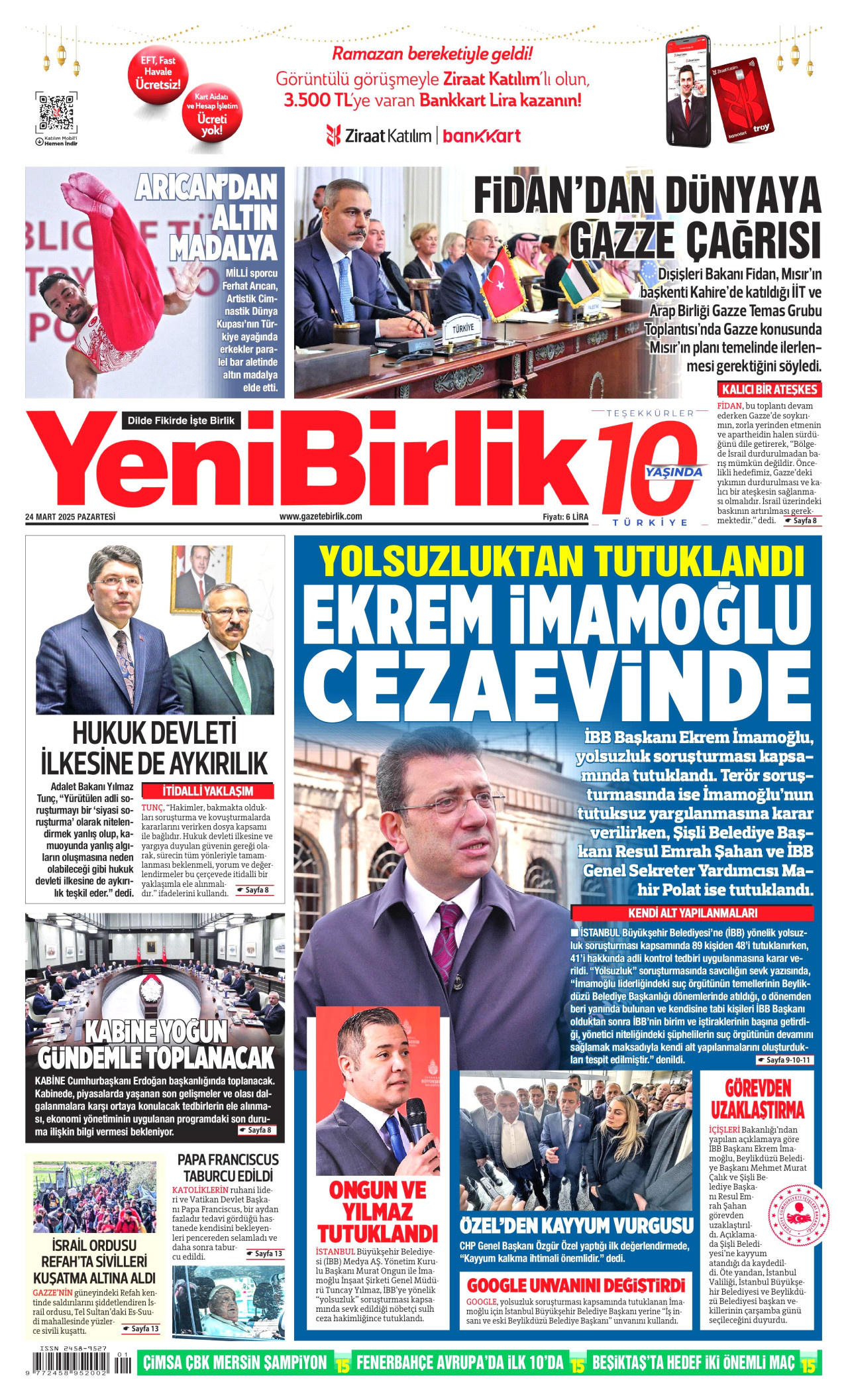 Yeni Birlik Gazetesi | 24 Mart 2025