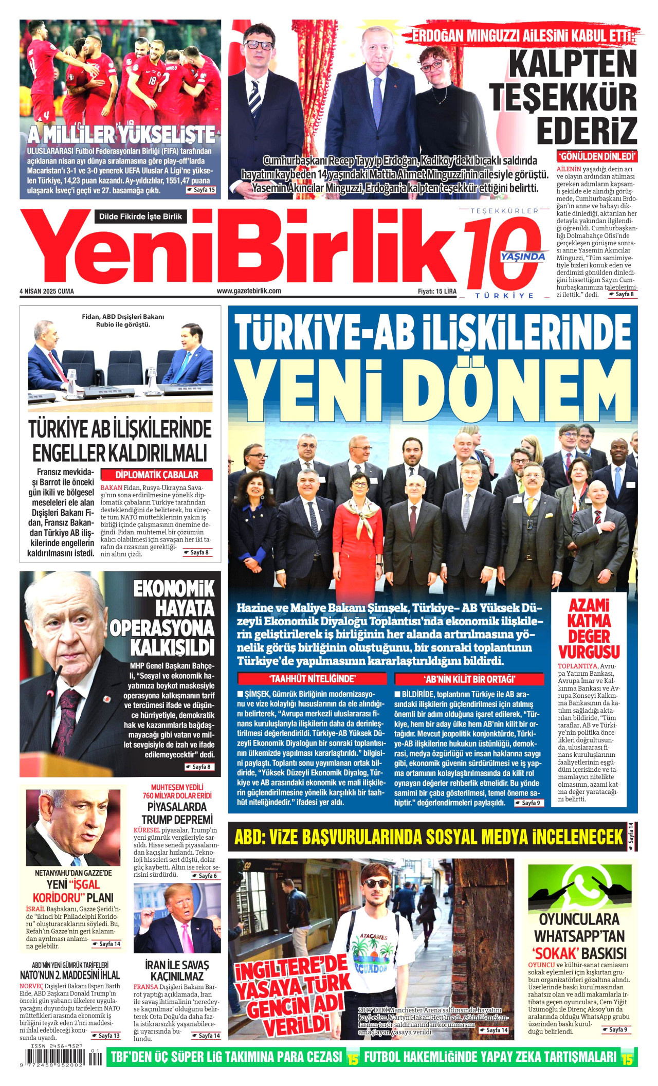 Yeni Birlik Gazetesi | 4 Nisan 2025